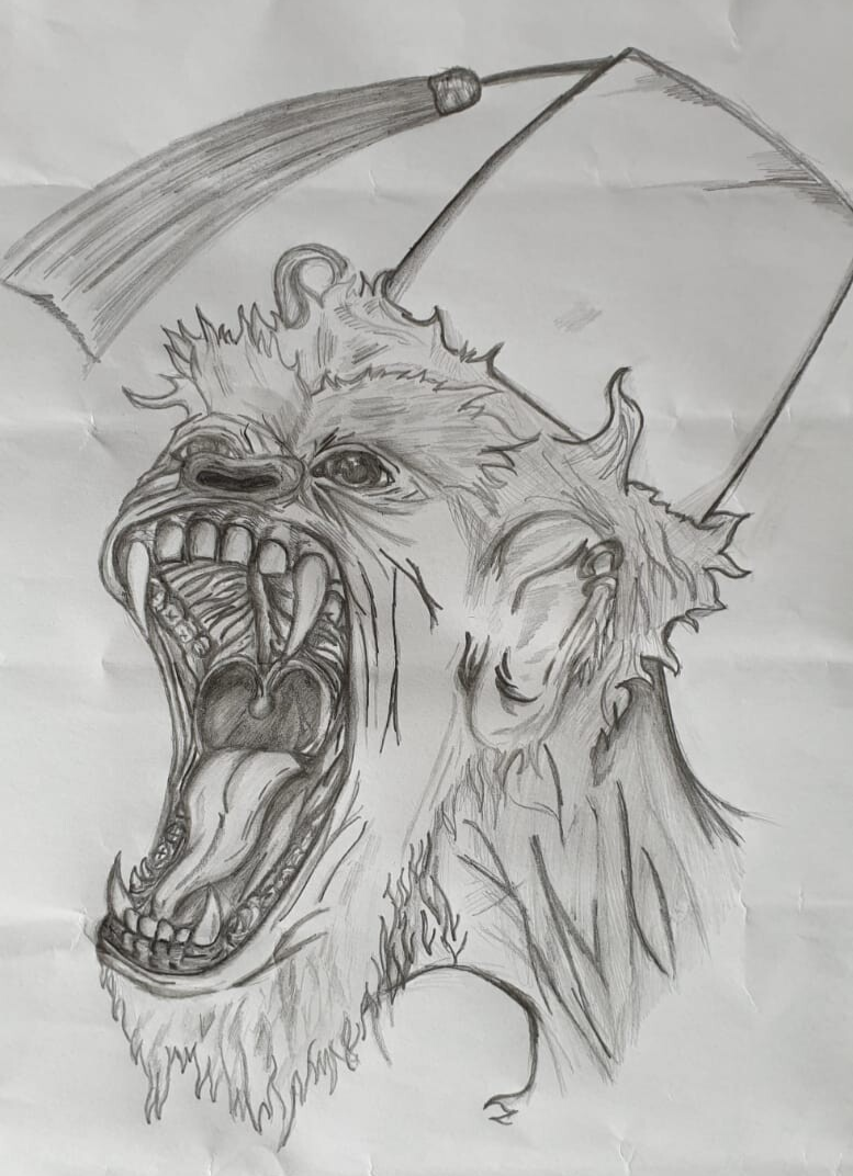 Tijdens de Nederlands les kregen we de opdracht om een schets te maken bij een scène uit het boek 'Reize door het apenland'.