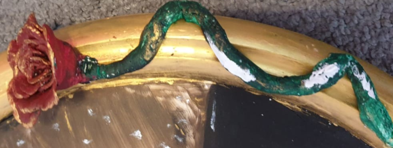Om de lijst mooier te maken, heb ik een roos bij gemaakt. Een rode roos staat centraal in het stuk. Op vele reclame posters is deze dan ook samen met het masker te zien.