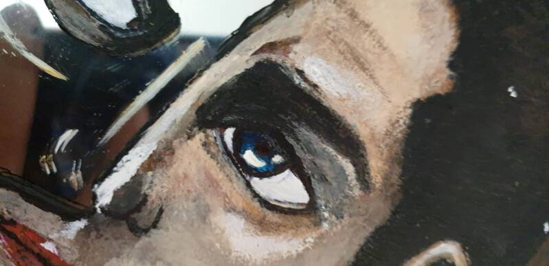 Ik was eerst van plan het andere oog niet te doen, zodat de hele rechterzijde een spiegels was. Dan zouden mensen hun eigen oog kunnen zien. Ik heb later toch besloten om het andere oog wel te doen.